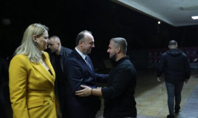 Bartësi i listës për Komunën e Tetovës nga koalicioni “VLEN”, Albi Qamili, së bashku me kryetarin e Komunës së Tetovës, Bilall Kasami, kryetarin e Kuvendit, Afrim...